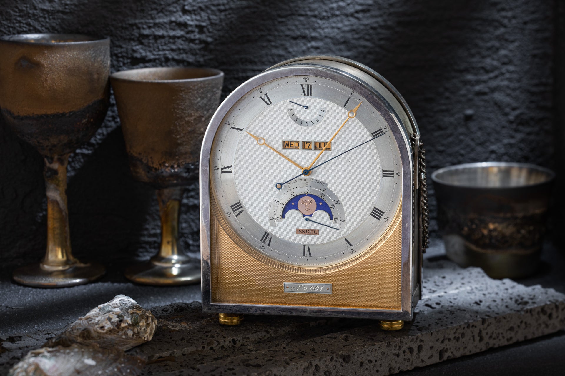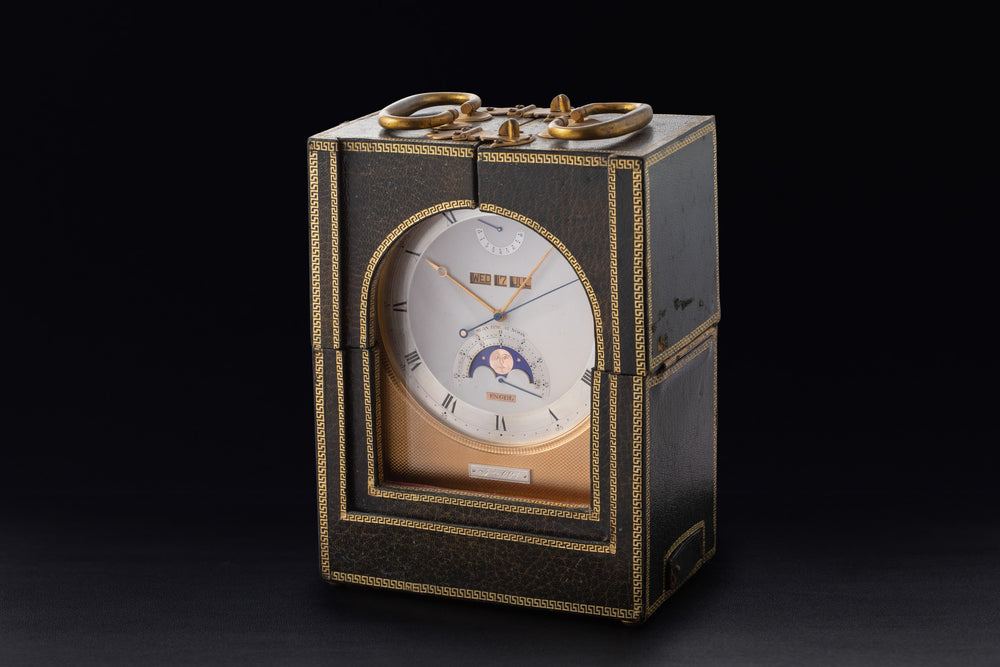 Engel's fascination with the timepieces of Breguet also extended to its clocks, and this is modelled on a typical Breguet carriage clock from the 19th century. Engel reputedly had this clock produced after realising the difficulty of obtaining an original. Expressing a similar frustration, George Daniels also replicated a Breguet clock No.3225 for the very same reason.