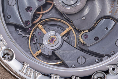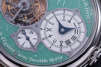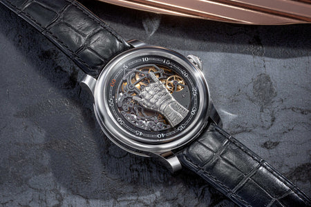 Presented in 2019 for the 20th anniversary of his tourbillon, the Tourbillon Vertical refines the concept of the original. This features a 30-second tourbillon – meaning it rotates at twice the speed of a conventional tourbillon - with the balance wheel positioned perpendicular to the plane of the dial. The rationale behind the unorthodox construction is simple: because a wristwatch spends most of its life off the owner’s wrist – either flat on its back or on its side – the balance wheel will be vertical most of the time, ensuring the tourbillon carriage can carry out the original purpose of averaging out gravity-induced errors in timekeeping.