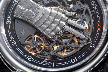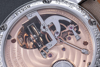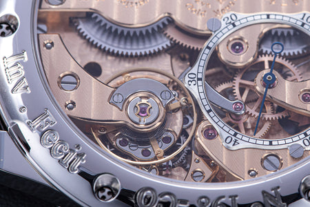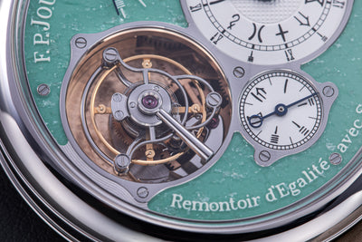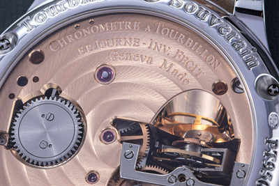 Journe spent his formative years apprenticing at his uncle - Michel Journe's antiquarian watch restoration workshop and his story only really begins when he moved to Switzerland in 1989 to establish Techniques Horlogères Appliquées (THA). Two of his fellow Frenchmen from Paris followed, Denis Flageollet, as well as Vianney Halter, who had urged Journe to provide him with the opportunity to join this complicated movement development incubator. Amongst the inaugural group at THA were Dominique Mouret, a talented watchmaker and restorer, as well as automaton specialists Nicolas Court and François Junod. Junod is a man whom Journe acknowledges as being one of the most gifted mechanical minds of his generation.