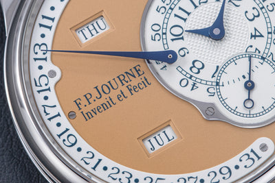 Though the size with which Journe made his debut, changing tastes had made the 40 mm and 42 mm cases more popular. At the same time, the larger cases allowed for bigger displays on the dial, resulting in watches like the Quantième Perpétuel, which has a far more legible calendar display than its predecessor.