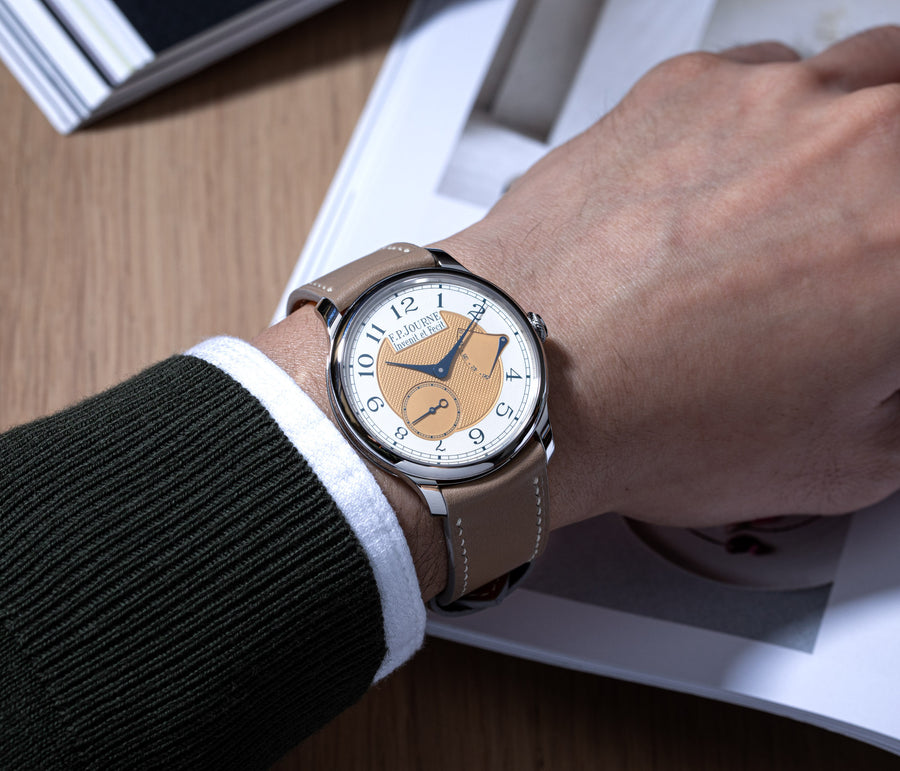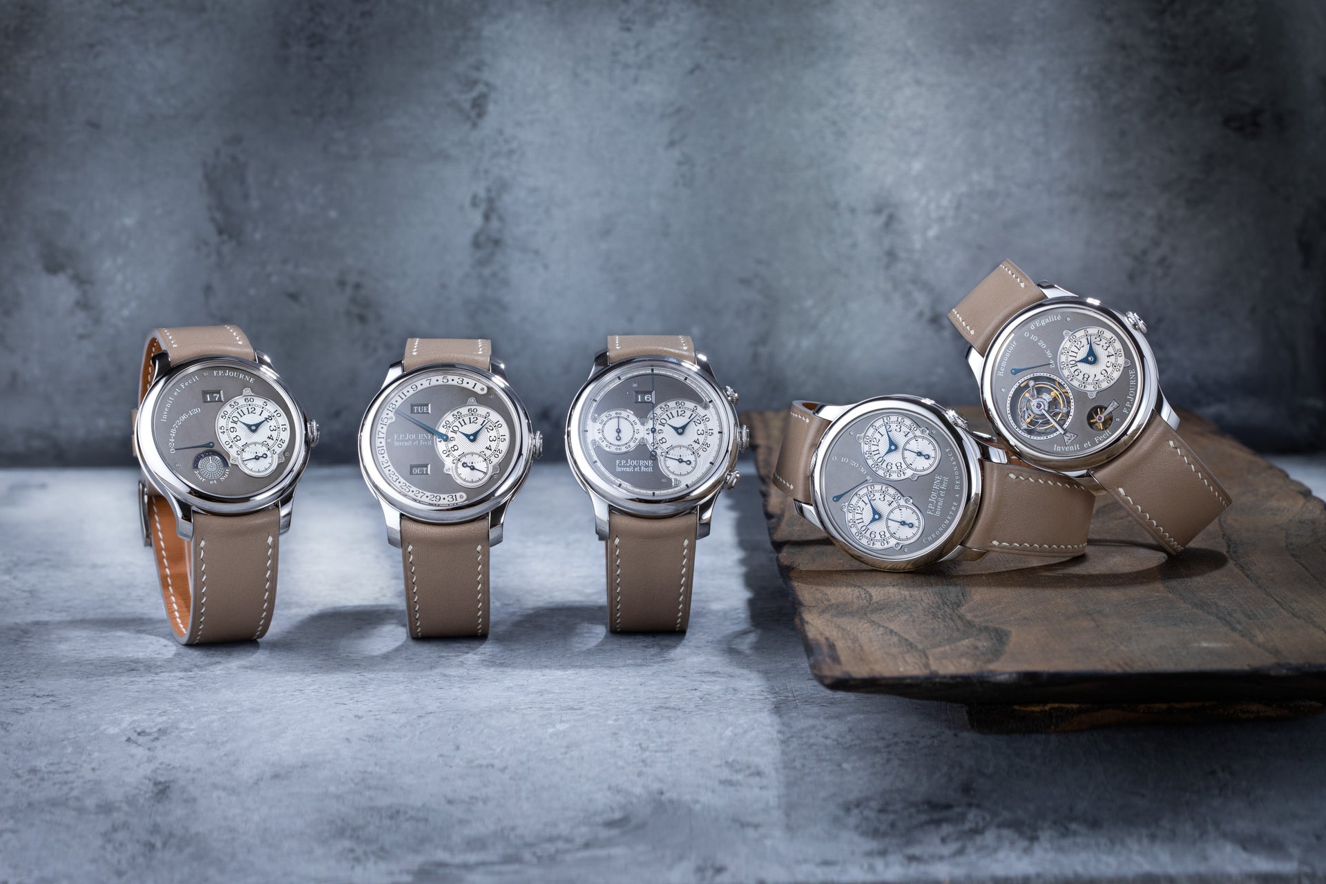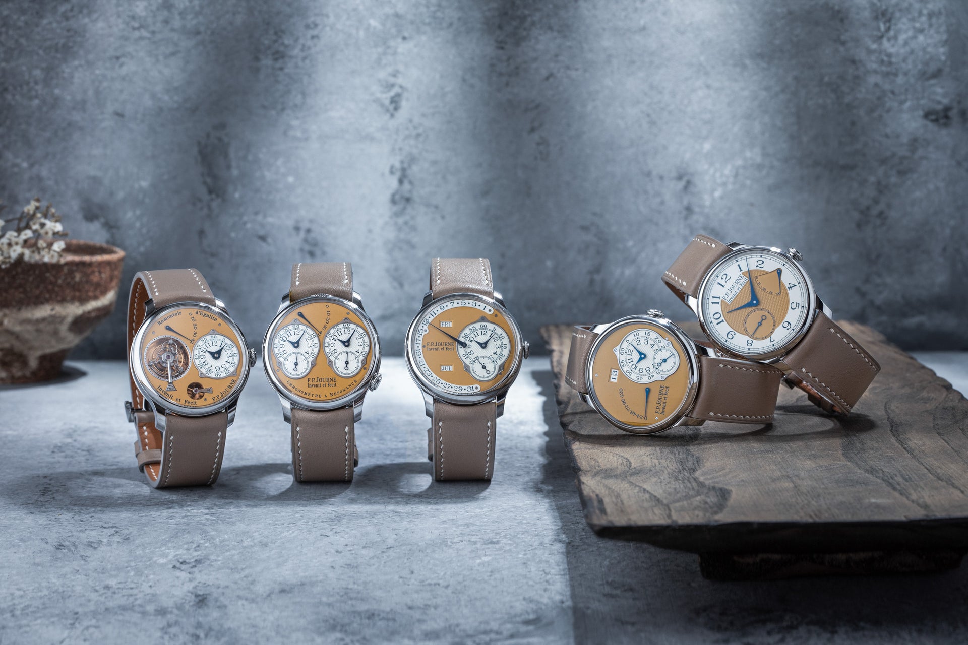 Like the Ruthenium set, the Coffret 38 mm was a limited edition to mark a significant event in the firm’s history, in this case the phasing out of the 38 mm case in 2015. Sold only as a set of five in a coffret, or box, the watches of the edition combined a solid-gold movement with a steel case, while using an unusual mustard-colour for the dials, a twist on the traditional yellow gold dial finish of F.P.Journe.