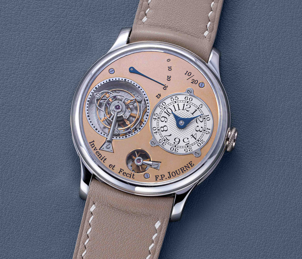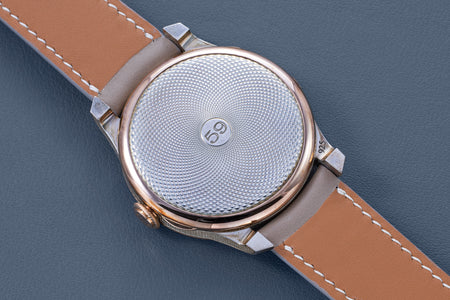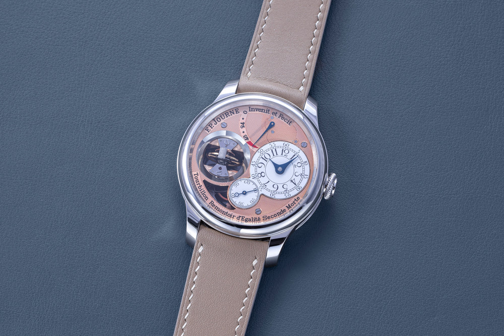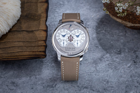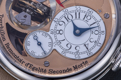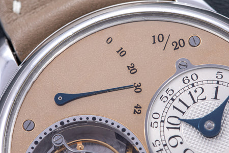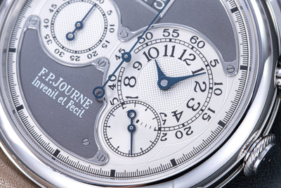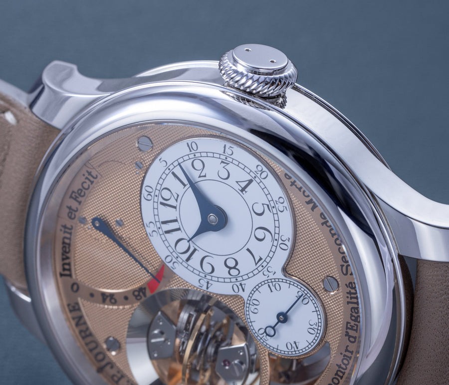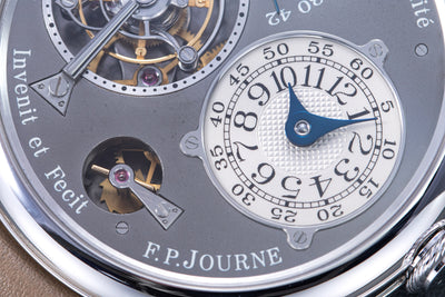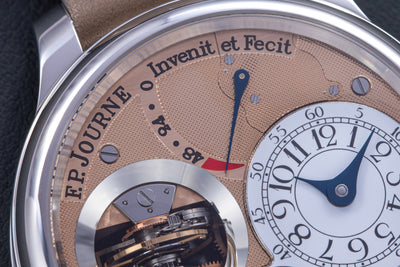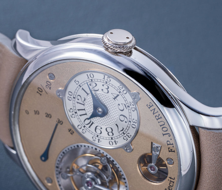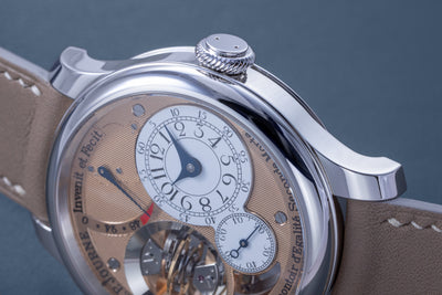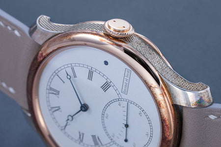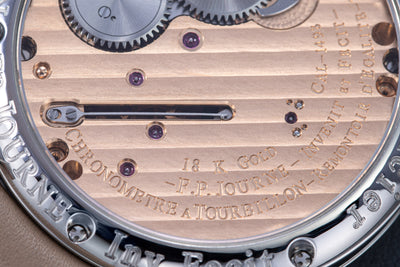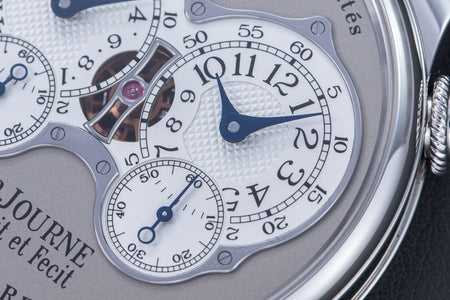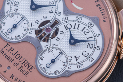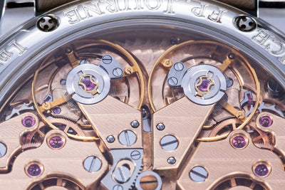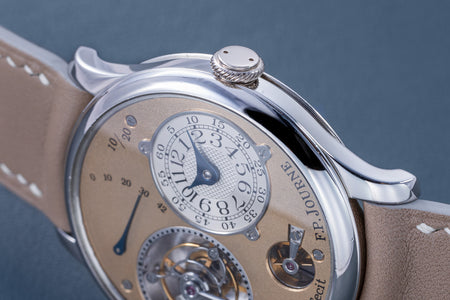 Presented in 2013 for the 30th anniversary of the first watch made by Journe, the T30 is essentially a wristwatch version of the 1983 original. It replicates the dial and movement layout of the original – reproducing the Breguet-inspired style - while also having a case made of sterling silver and rose gold, an uncommon combination in modern watchmaking.