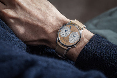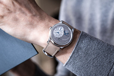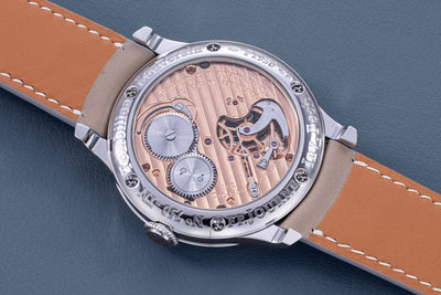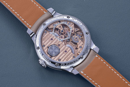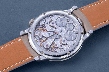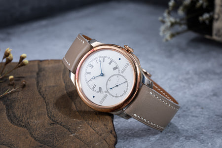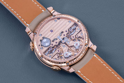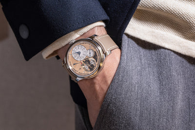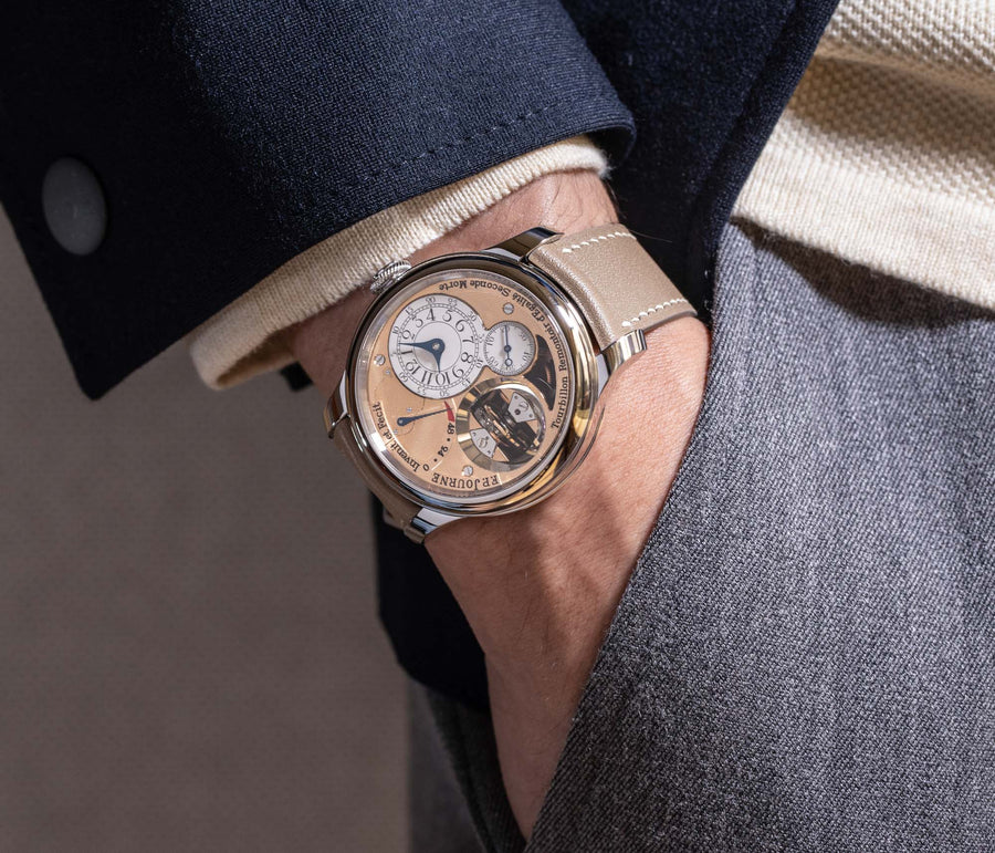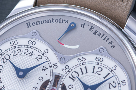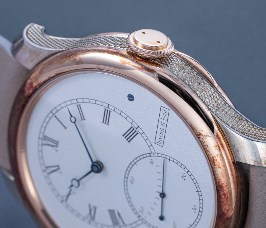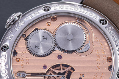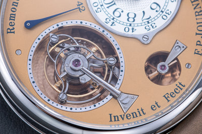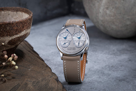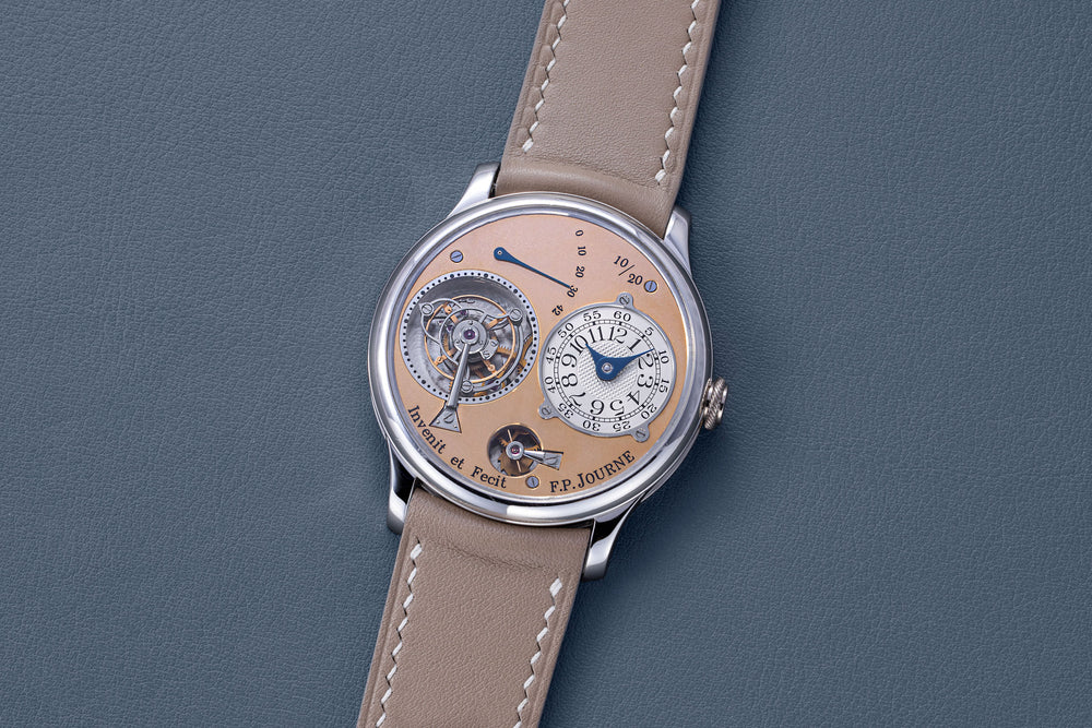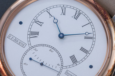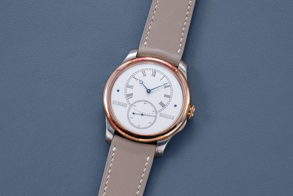Presented in 2013 for the 30th anniversary of the first watch made by Journe, the T30 is essentially a wristwatch version of the 1983 original. It replicates the dial and movement layout of the original – reproducing the Breguet-inspired style - while also having a case made of sterling silver and rose gold, an uncommon combination in modern watchmaking.