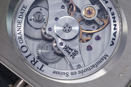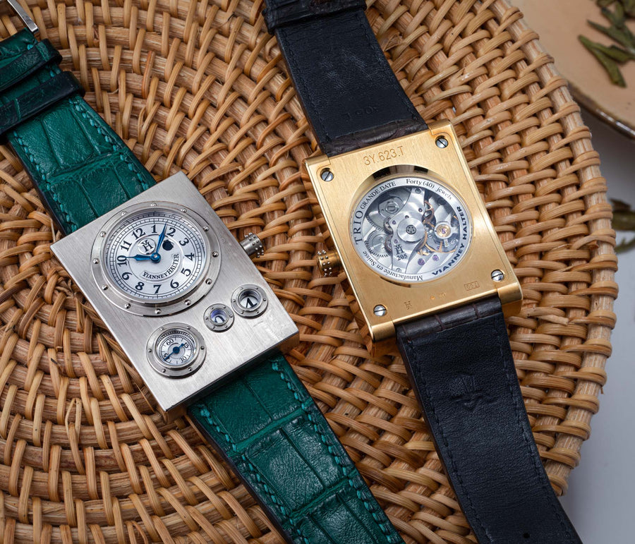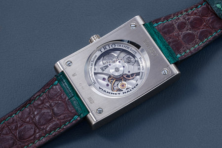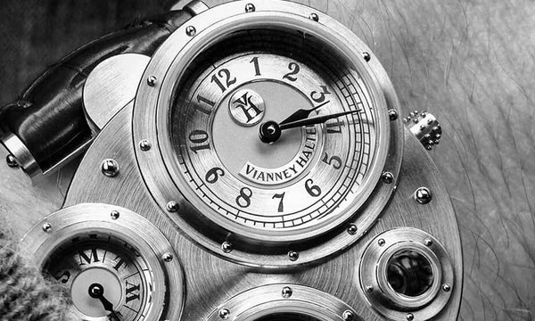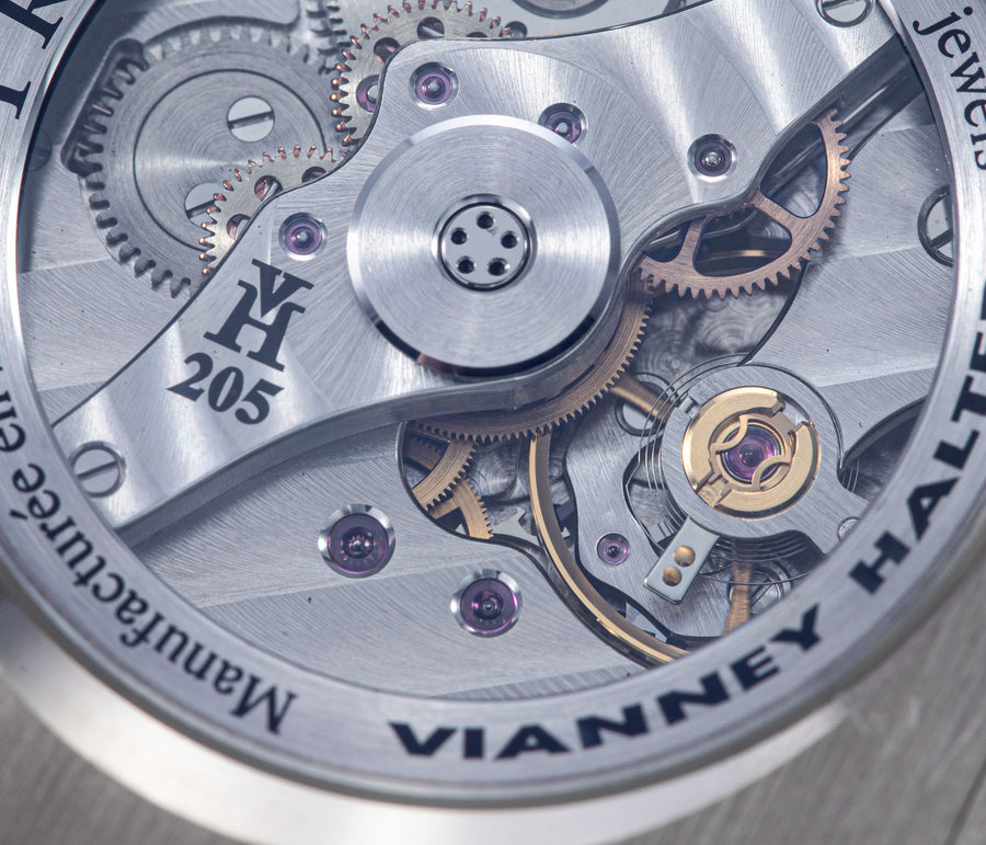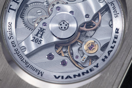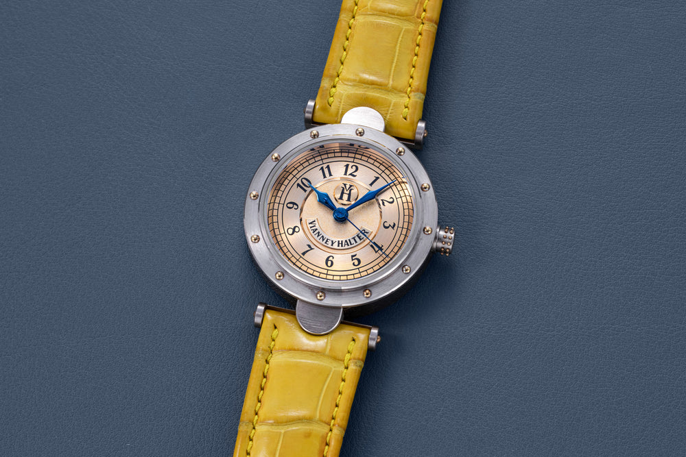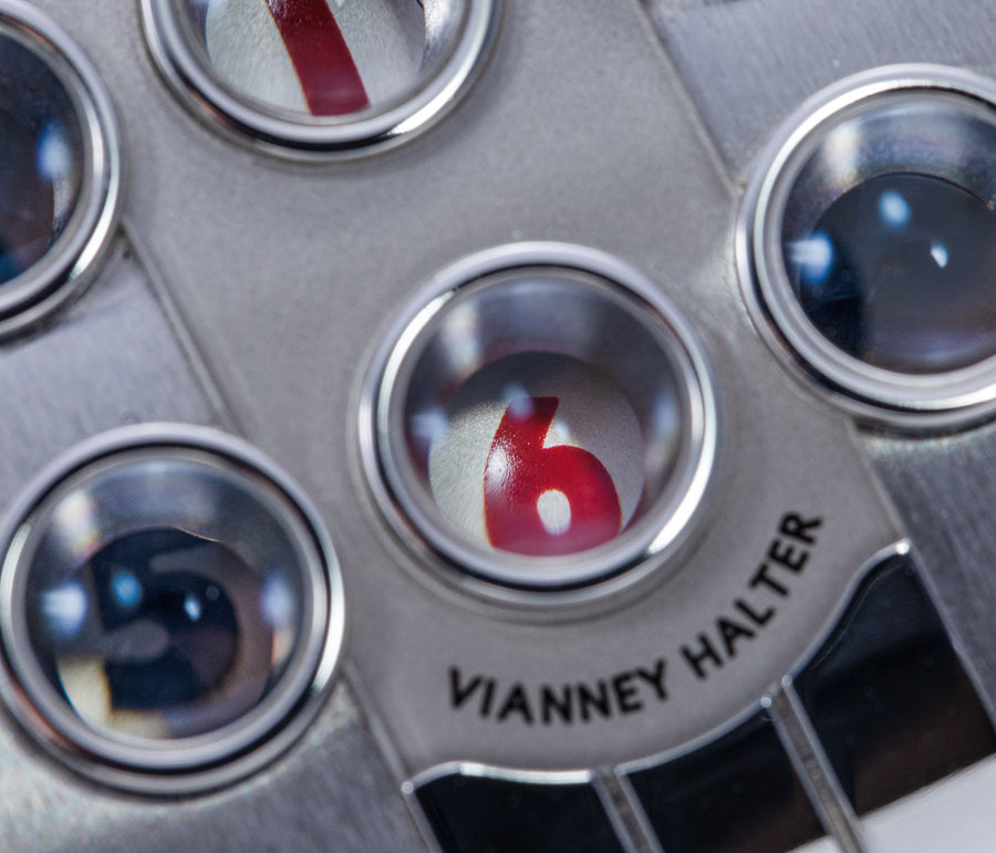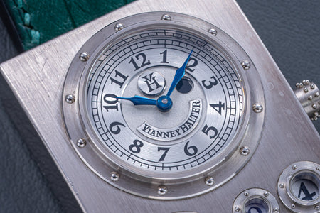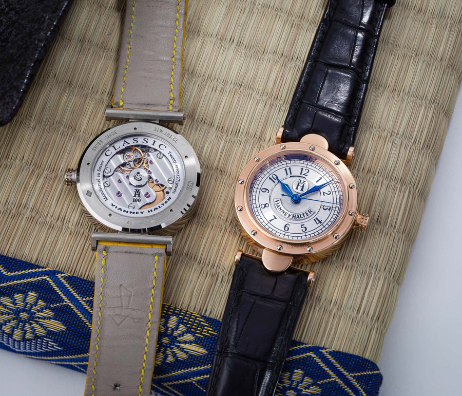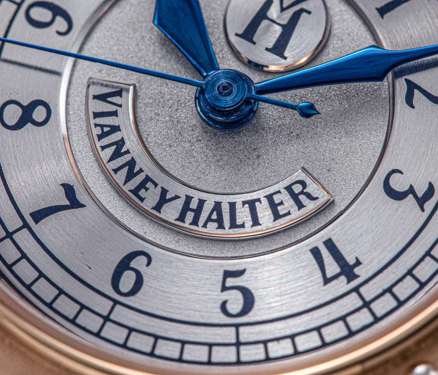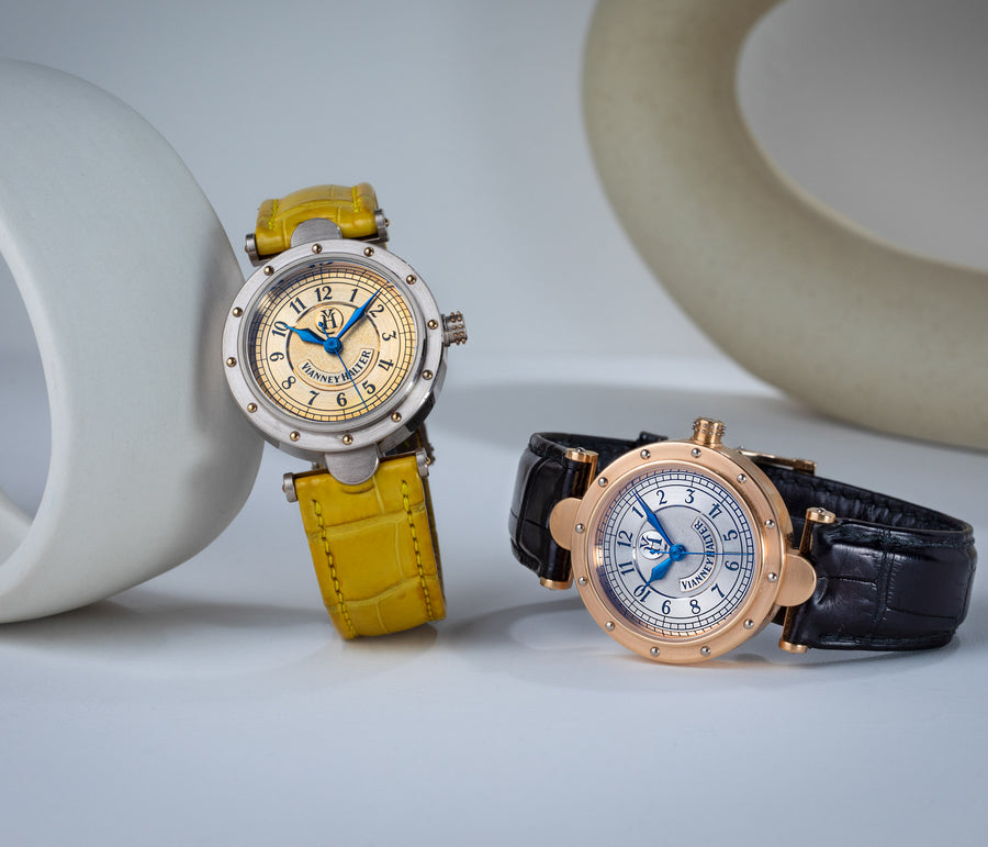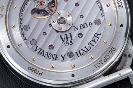 The quintessential Vianney Halter wristwatch, the Antiqua was launched in 1998. Radical in its steampunk design, the Antiqua was actually borne of Halter’s partnership with American designer Jeff Barnes, leading to the early brand name of Halter-Barnes.