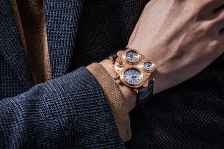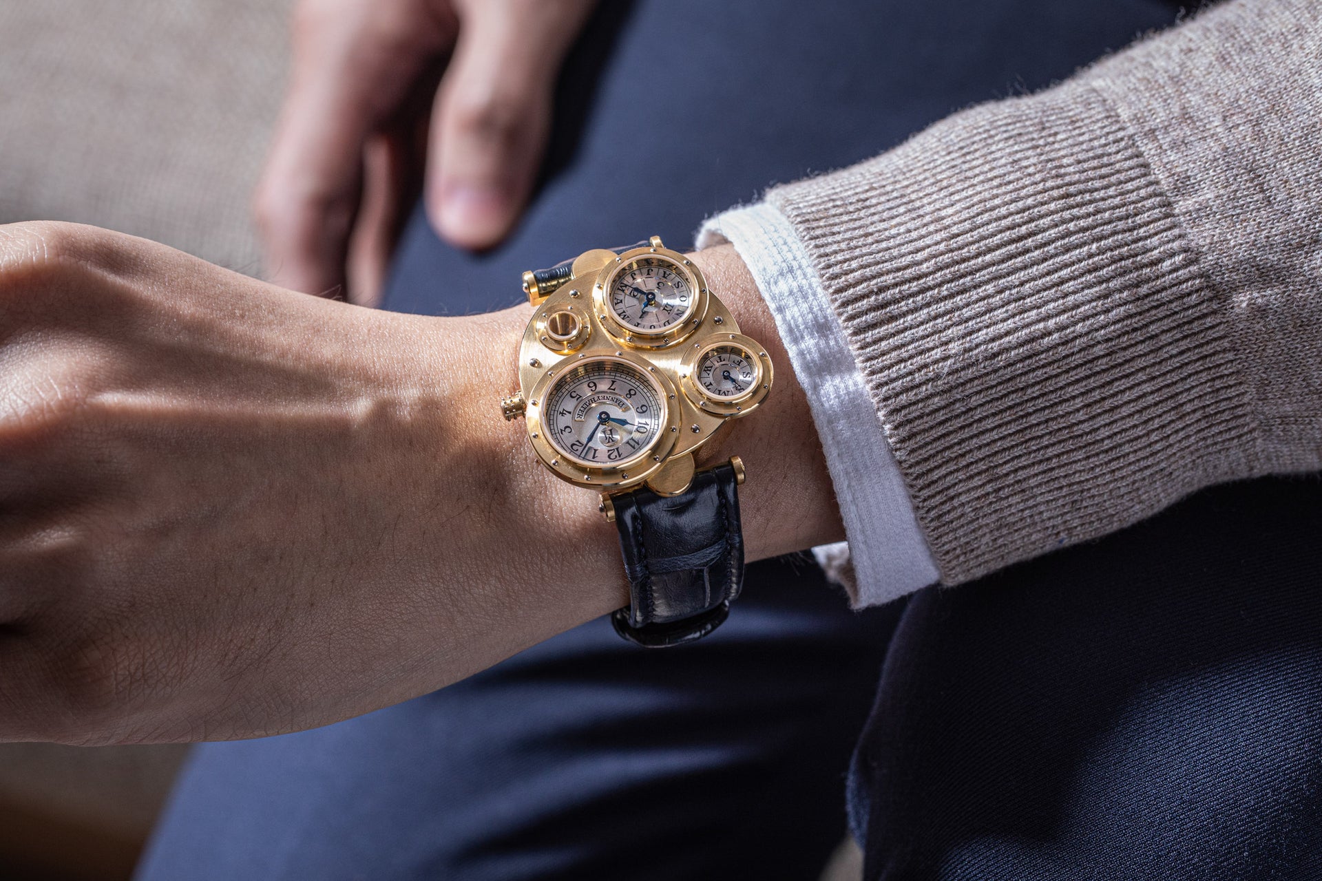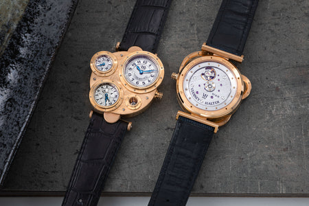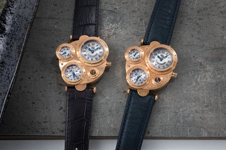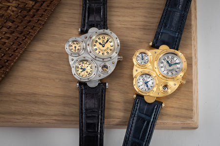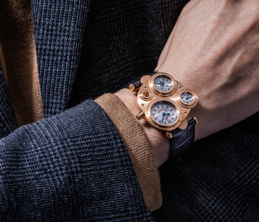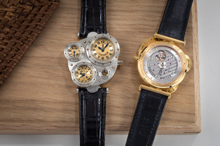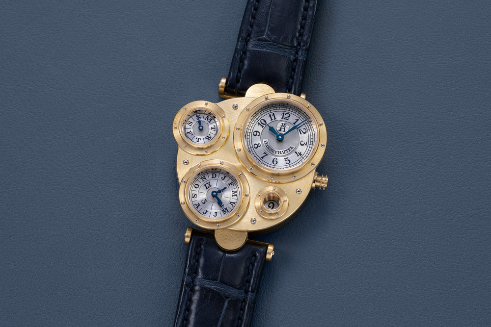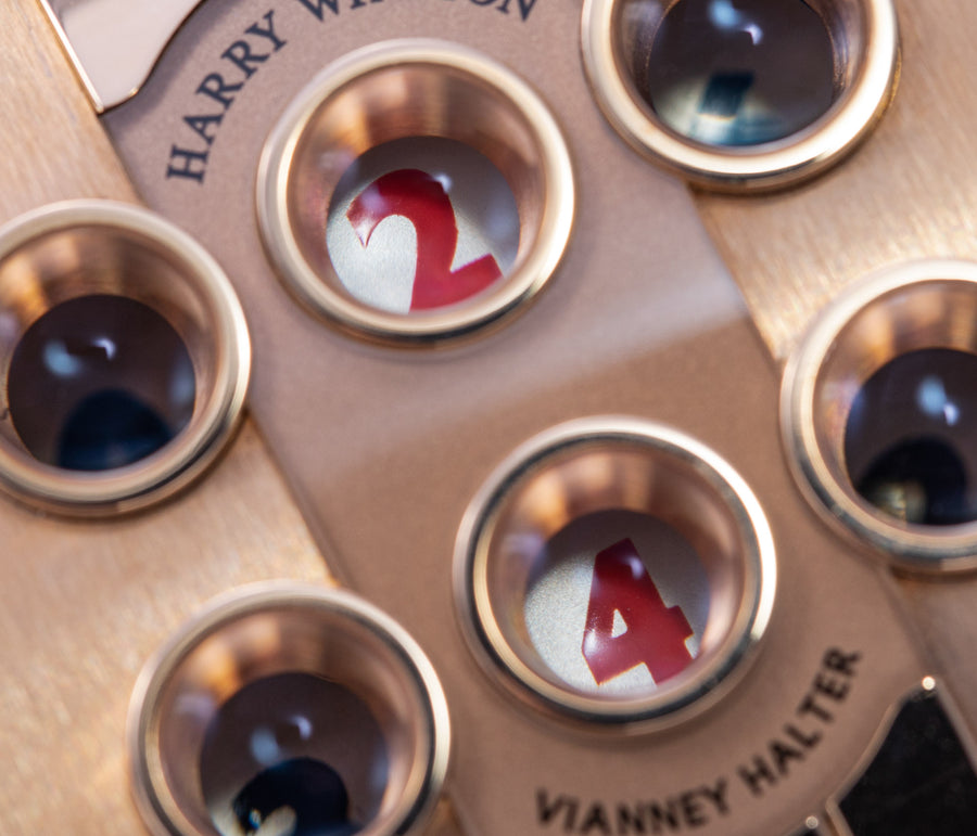 Introduced to Halter by Joseph Penola, an American associate of Barnes who originally hailed from Sainte-Croix and where Halter resides, Barnes’ inaugural 1994 design was a wristwatch with four sub-dials, each within its own porthole in a steampunk-style case. It was a round watch yet deconstructed and utterly unlike anything that had come before. In fact, it was so far from convention that few watchmakers would take on the task of turning the design into reality.