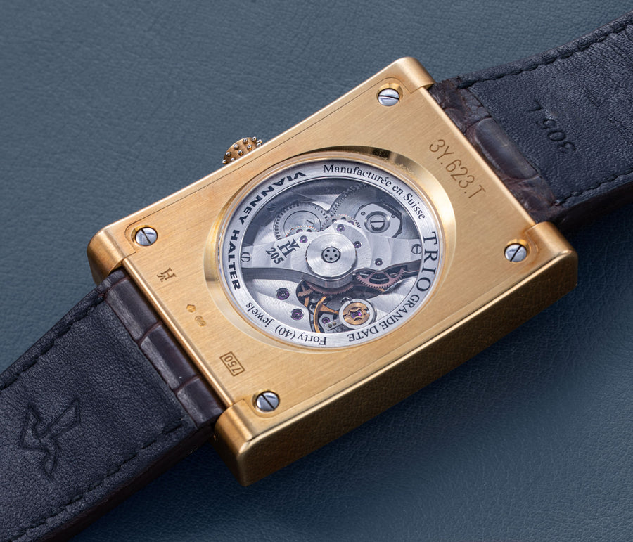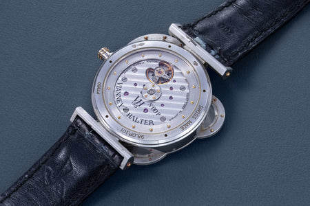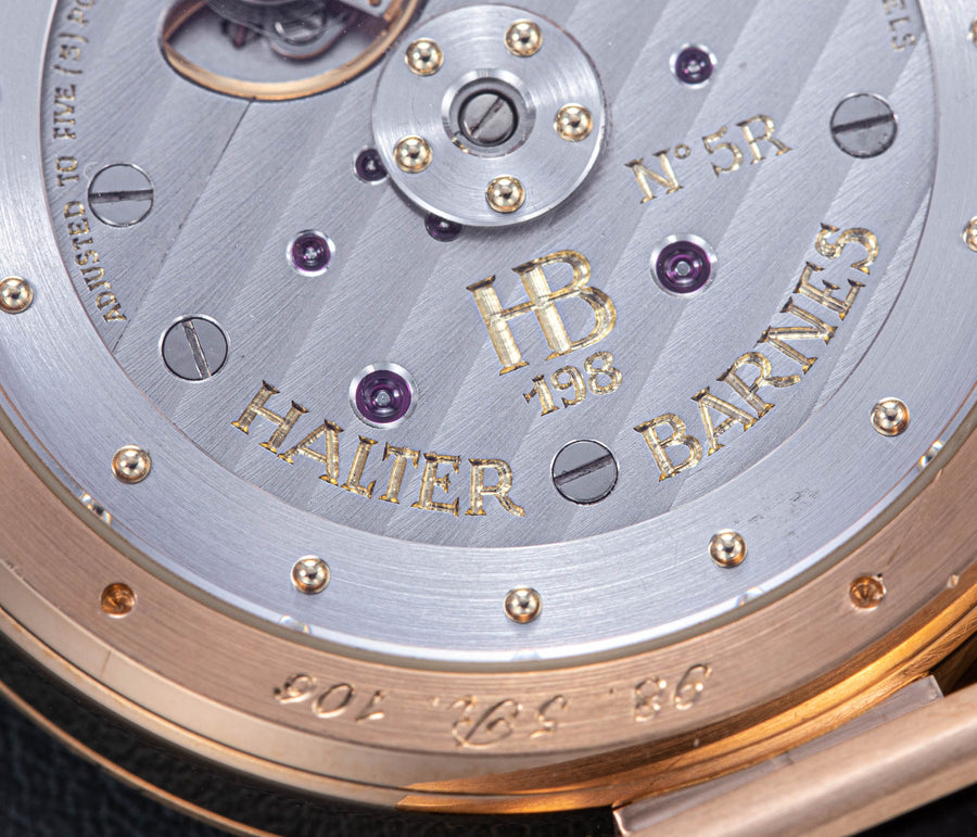 According to Halter, the first three examples of the Time Machine Perpetual Antiqua were badged “Halter Barnes”, but after a dispute between designer and watchmaker meant that Barnes role in its creation has largely been glossed over since. Made worse by the fact that out of the three original Halter Barnes Time Machine Perpetual Antiquas, only one example had survived.