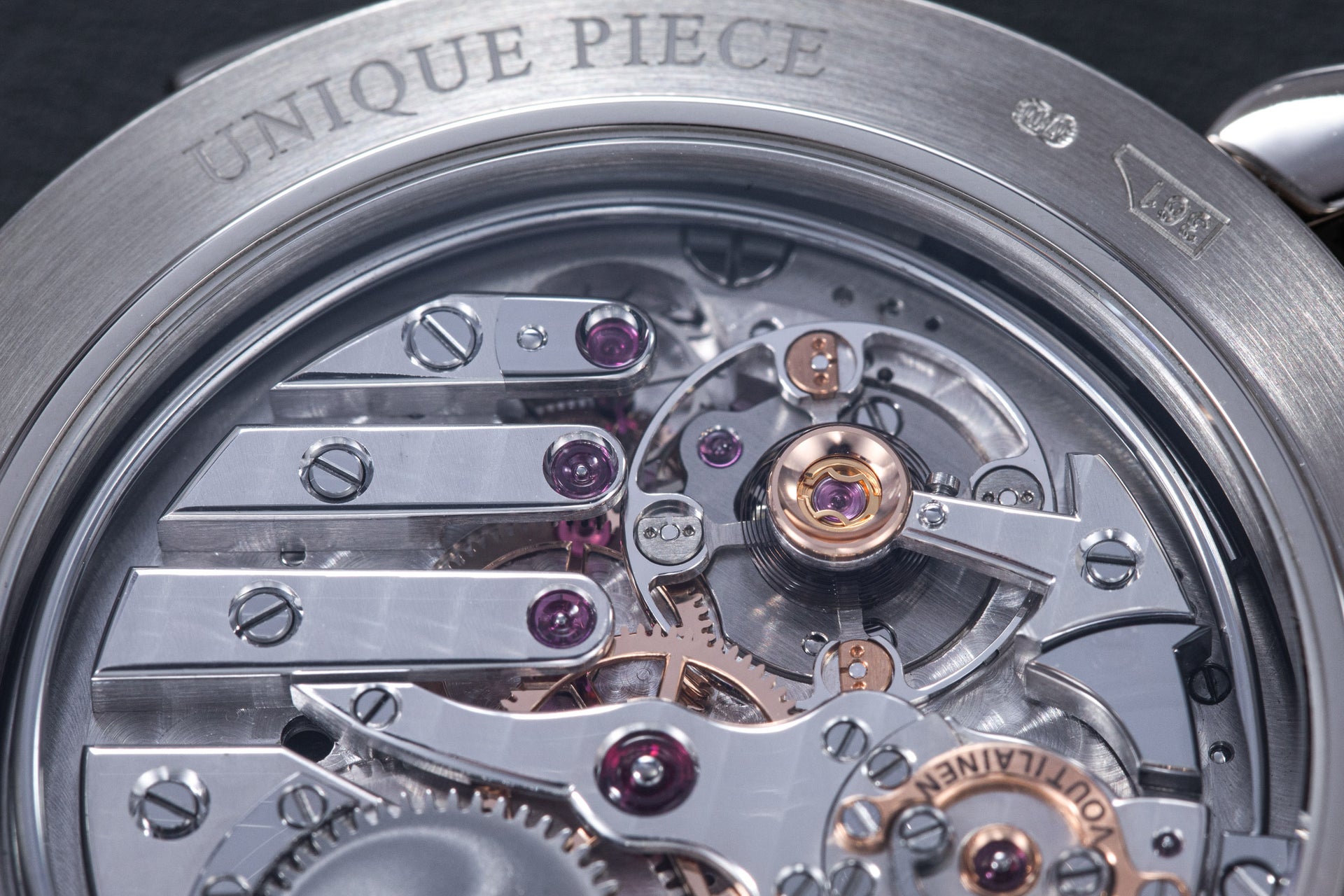 With a strong emphasis on the use of his in-house calibres today, Voutilainen initially began development of his wristwatches with heavily improved and highly finished vintage movements. This remains so for his minute repeating timepieces, including this Decimal Repeater. Starting with movement blanks, typically made by LeCoultre or Louis Elisée Piguet in the late 19th or early 20th century, Voutilainen refined the mechanics, often adding his own components and modifications, most notably the decimal strike mechanism to replace the conventional quarter strike.
