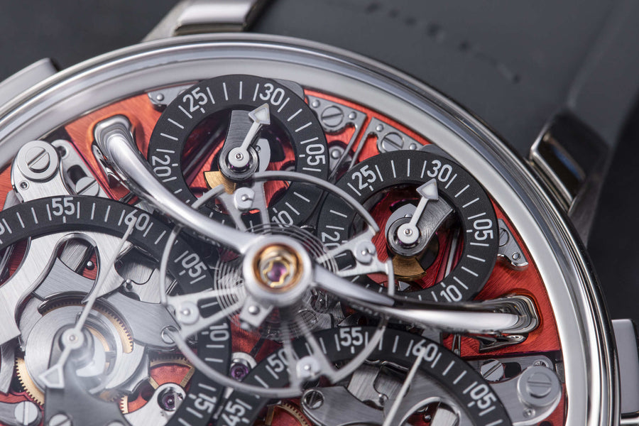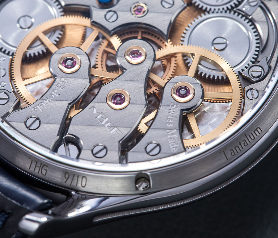 Created at the suggestion of The Hour Glass, the Thunderdome was also produced with a tantalum case in a 10-piece edition for the 40th anniversary of The Hour Glass. A dense metal with a grey-blue hue, tantalum is rarely used in watches due to the cost of working the alloy, resulting in tantalum cases costing as much as those in precious metals.
