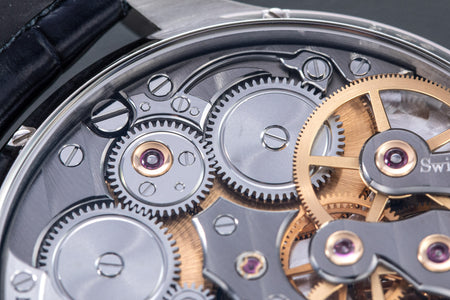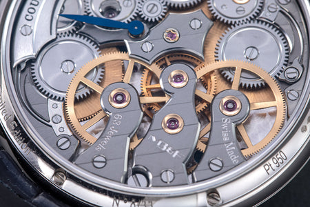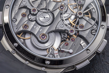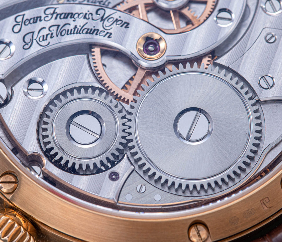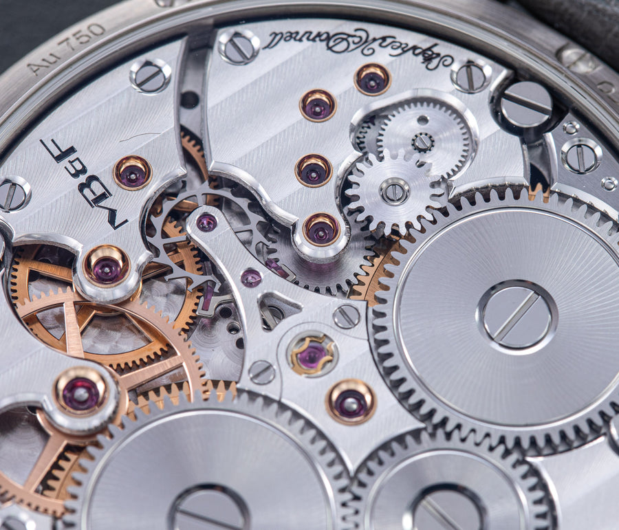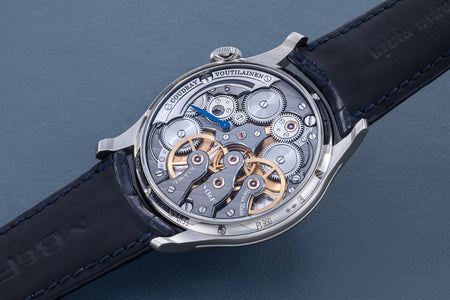 Powered by a movement derived from the LM Perpetual, this LM Split Escapement (LM SE) offers a streamlined set of displays – time, date, and power reserve – while retaining the oversized balance wheel.