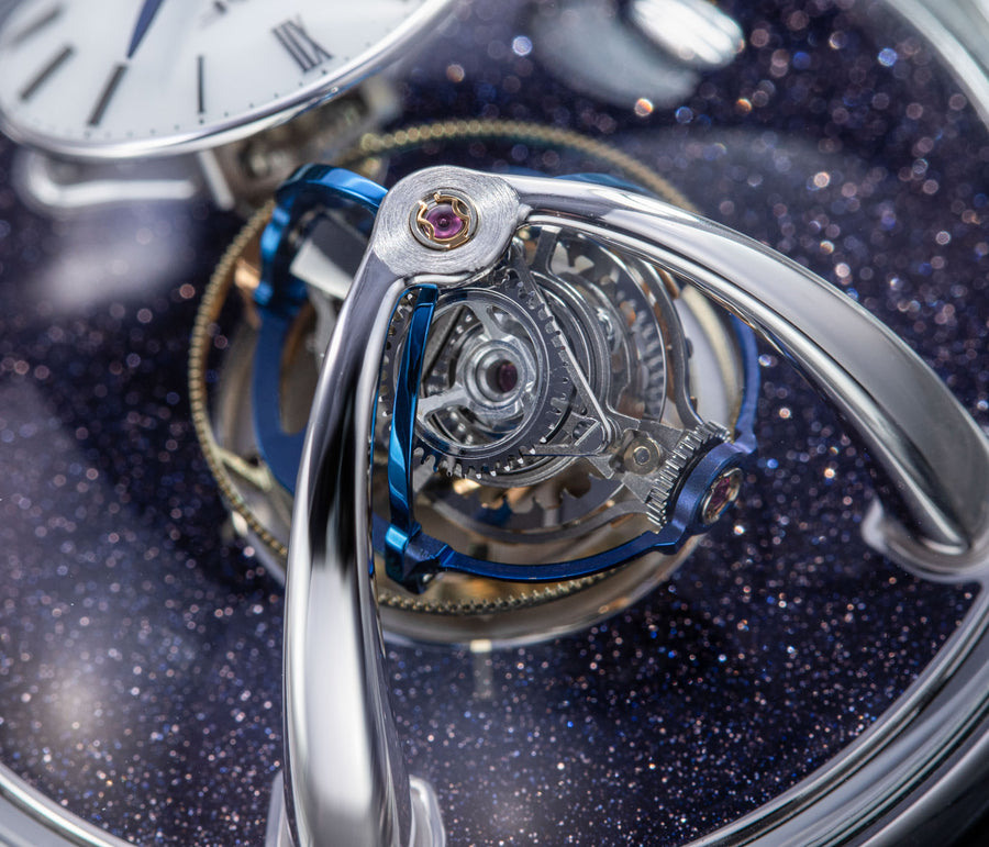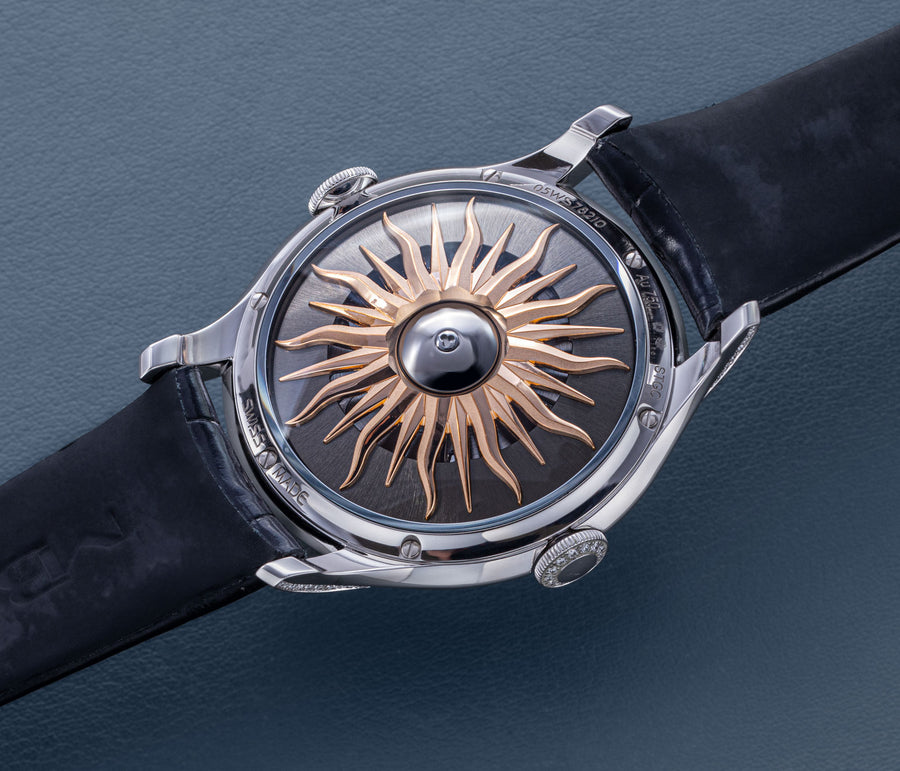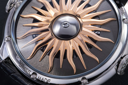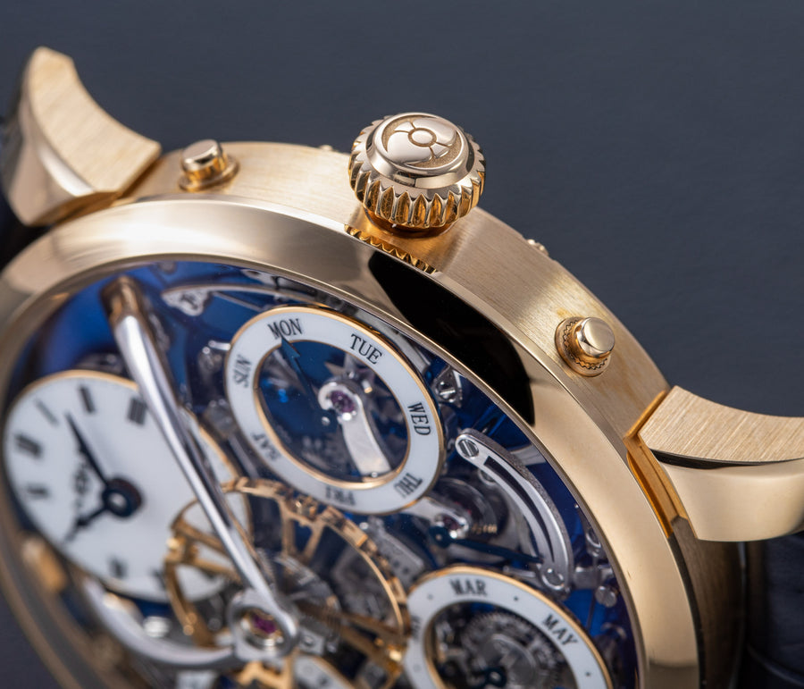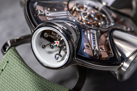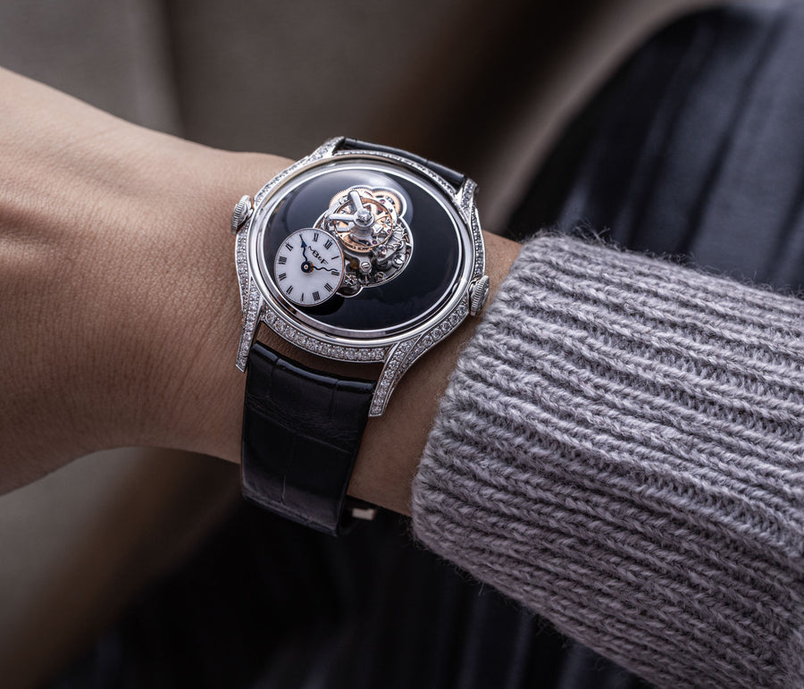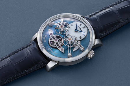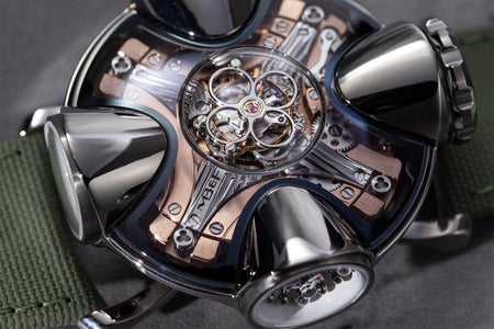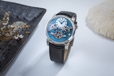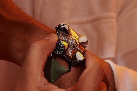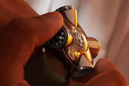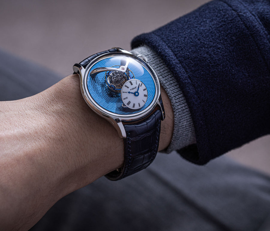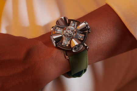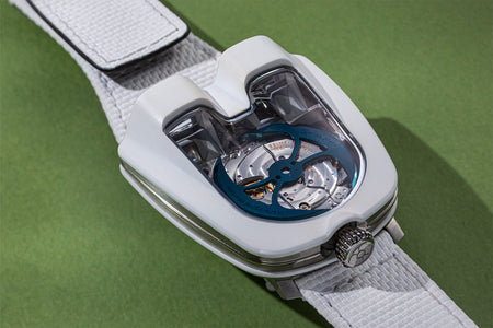 Since its inception in 2007, MB&F and its Horological Machines have proven to be the pinnacle of watchmaking alongside the release of the HM11 Architect, further blurring the lines between what a house and a watch can be. The HM11 resembles a house that drew inspiration from the 1960s and 70s futuristic architecture, which features a central flying tourbillon at its core. View the watch from various angles as the entire structure rotates on its foundation - whether it’s having one of the four rooms or corridors facing you, the HM11’s versatility in display orientation also features practical usage. The HM11 has a power reserve of 96 hours and it can be completely rewound after just 10 full clockwise rotations of the case. Check out the movement in all its glory through the unprecedented see-through crown at only 10 mm in diameter.