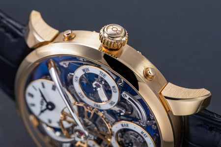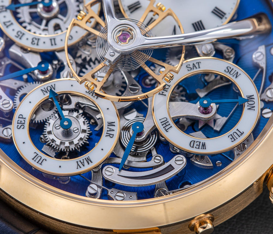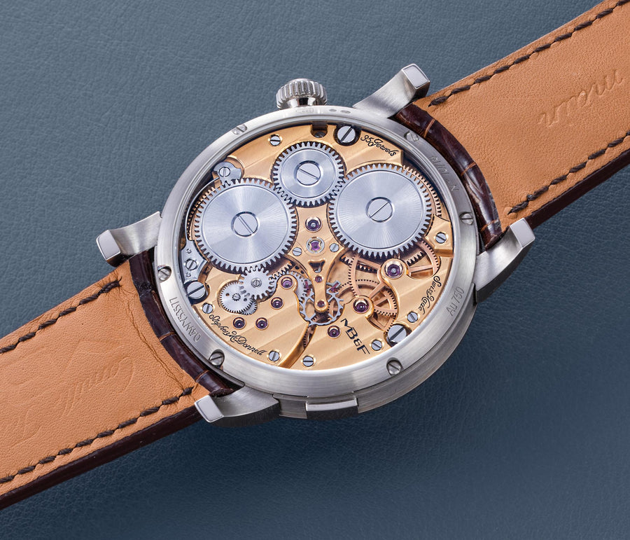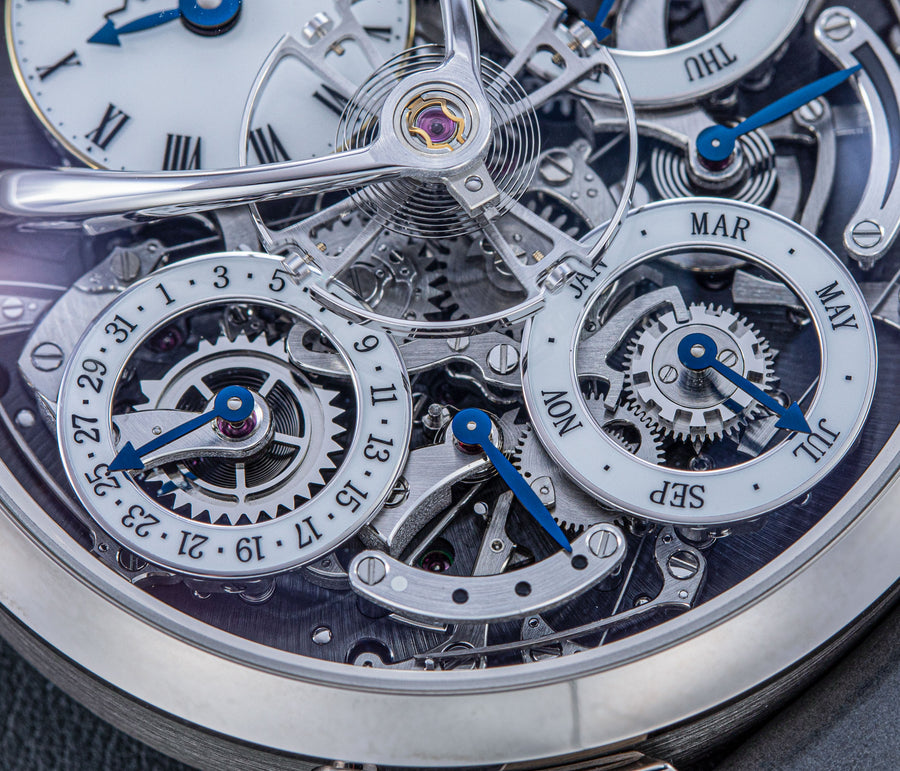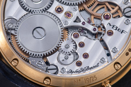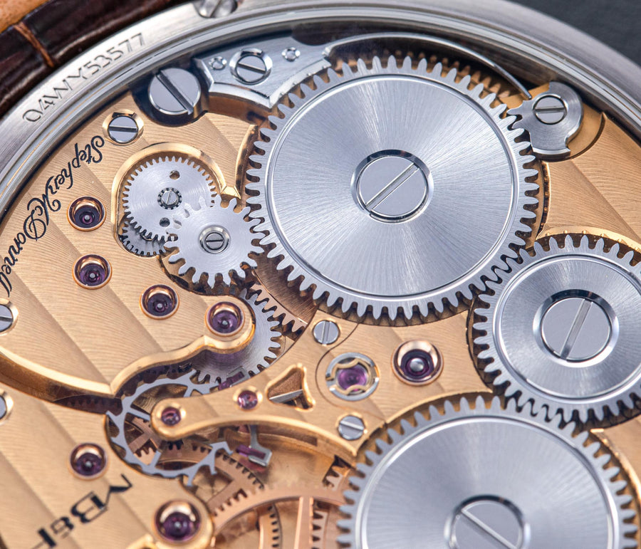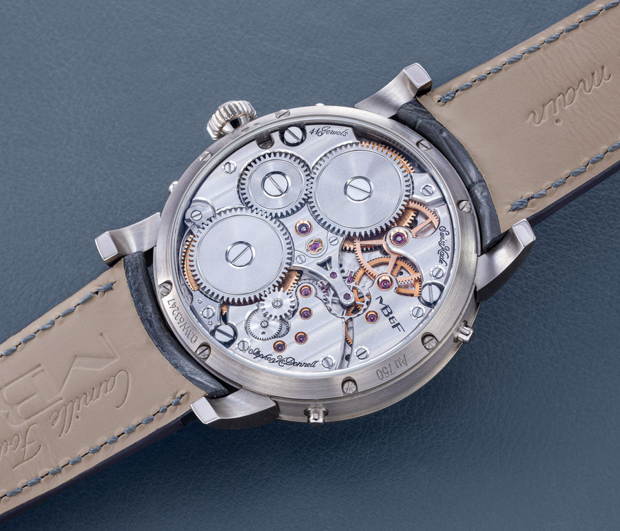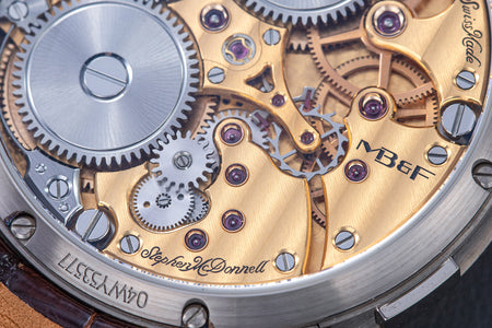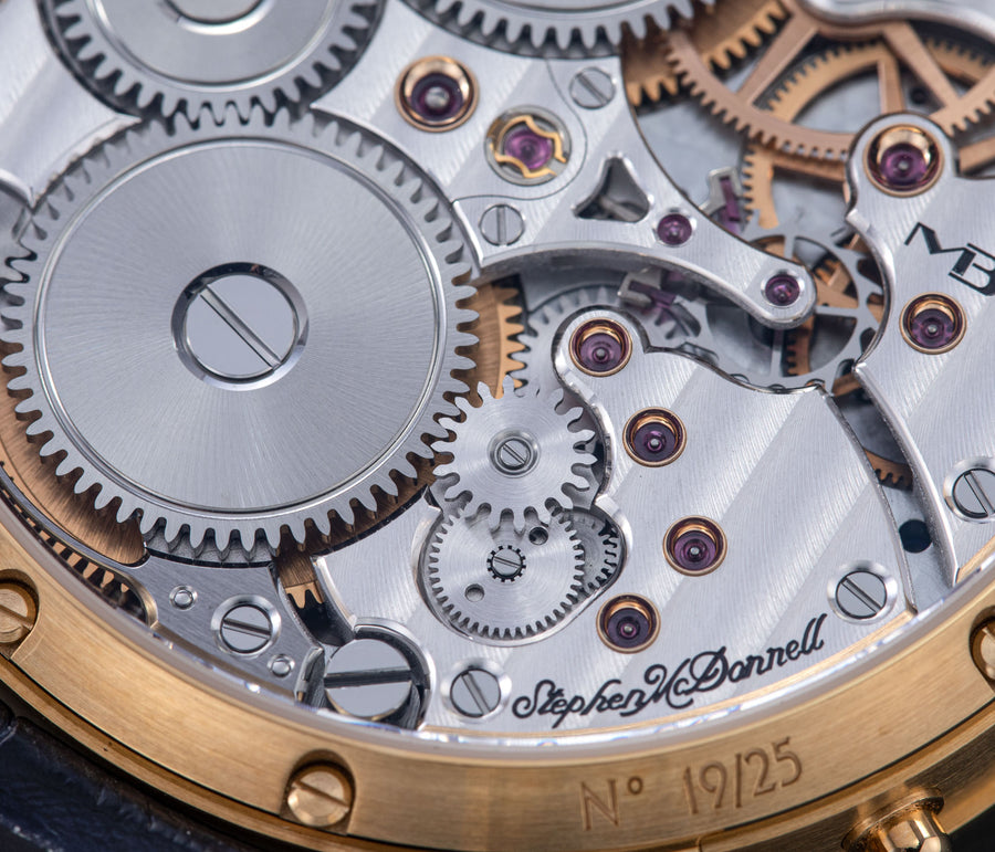 Stephen McDonnell reinvented one of the most complex traditional watchmaking complications, the perpetual calendar. Developed from the ground up, the 581-component movement was designed to eliminate the drawbacks of conventional perpetual calendars, namely, skipping dates and jamming gears.