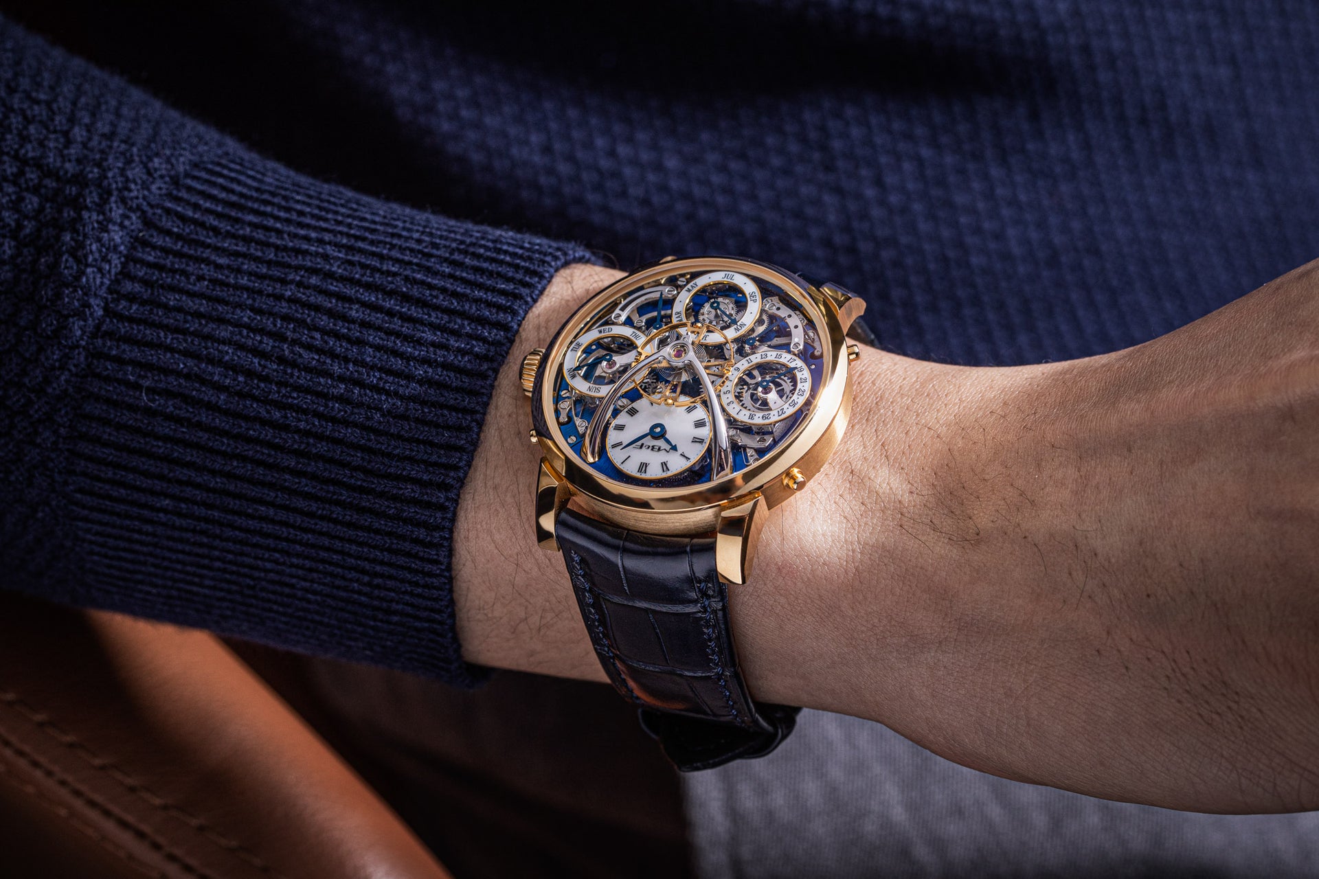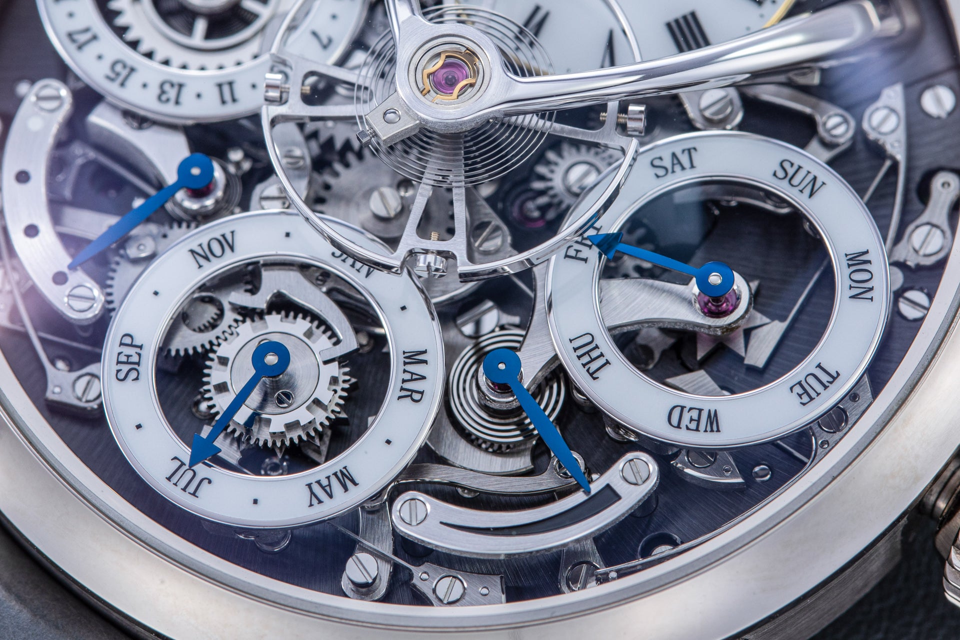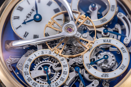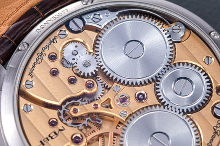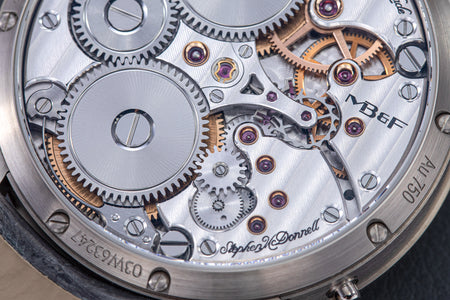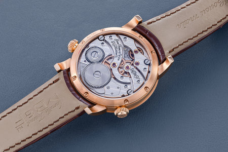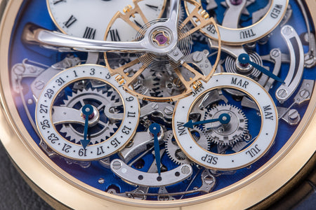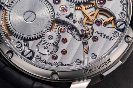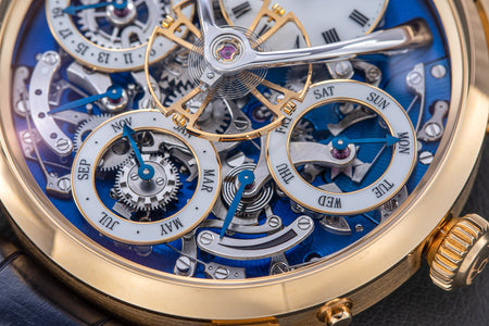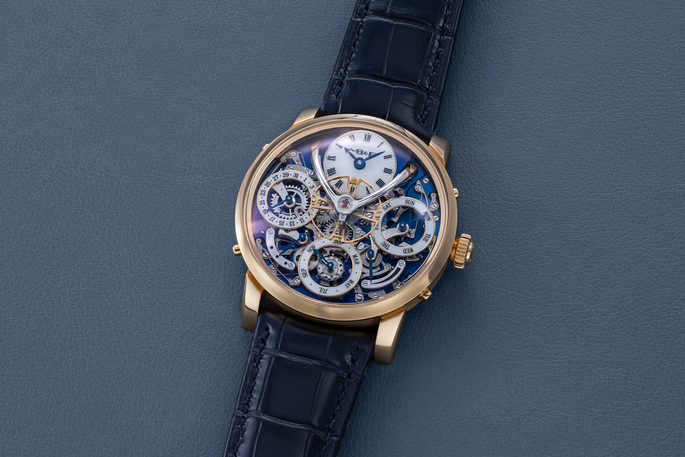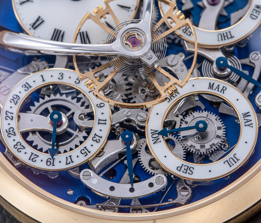 Stephen McDonnell reinvented one of the most complex traditional watchmaking complications, the perpetual calendar. Developed from the ground up, the 581-component movement was designed to eliminate the drawbacks of conventional perpetual calendars, namely, skipping dates and jamming gears.
