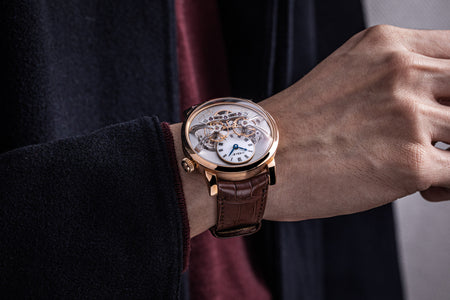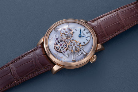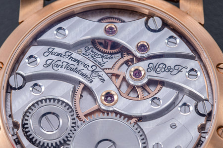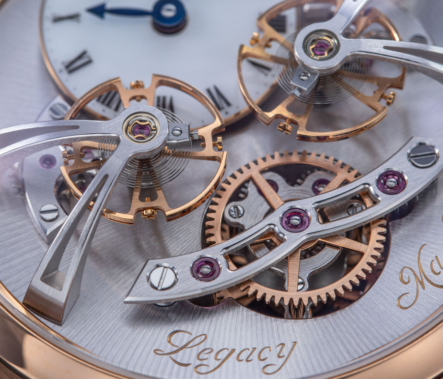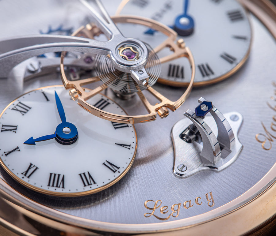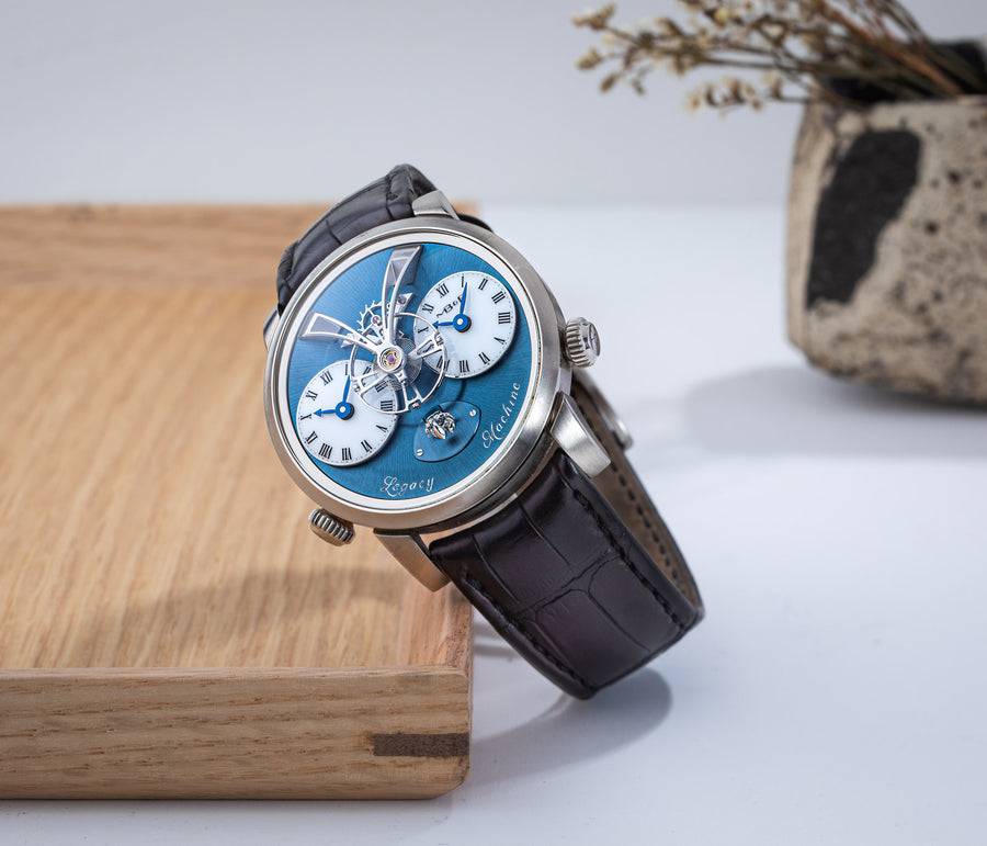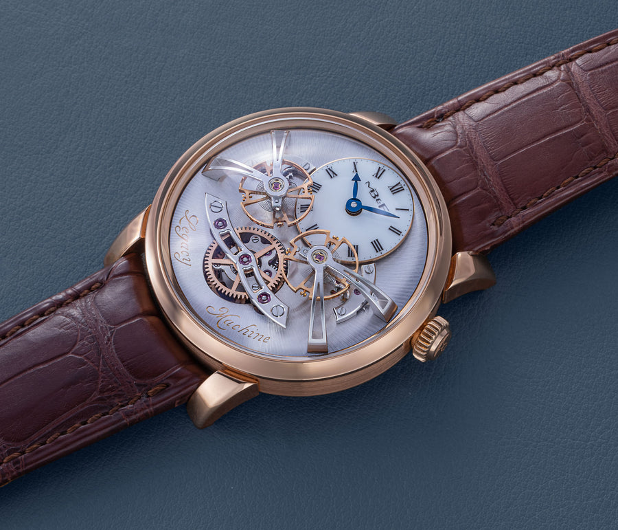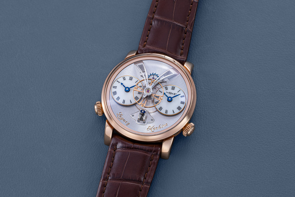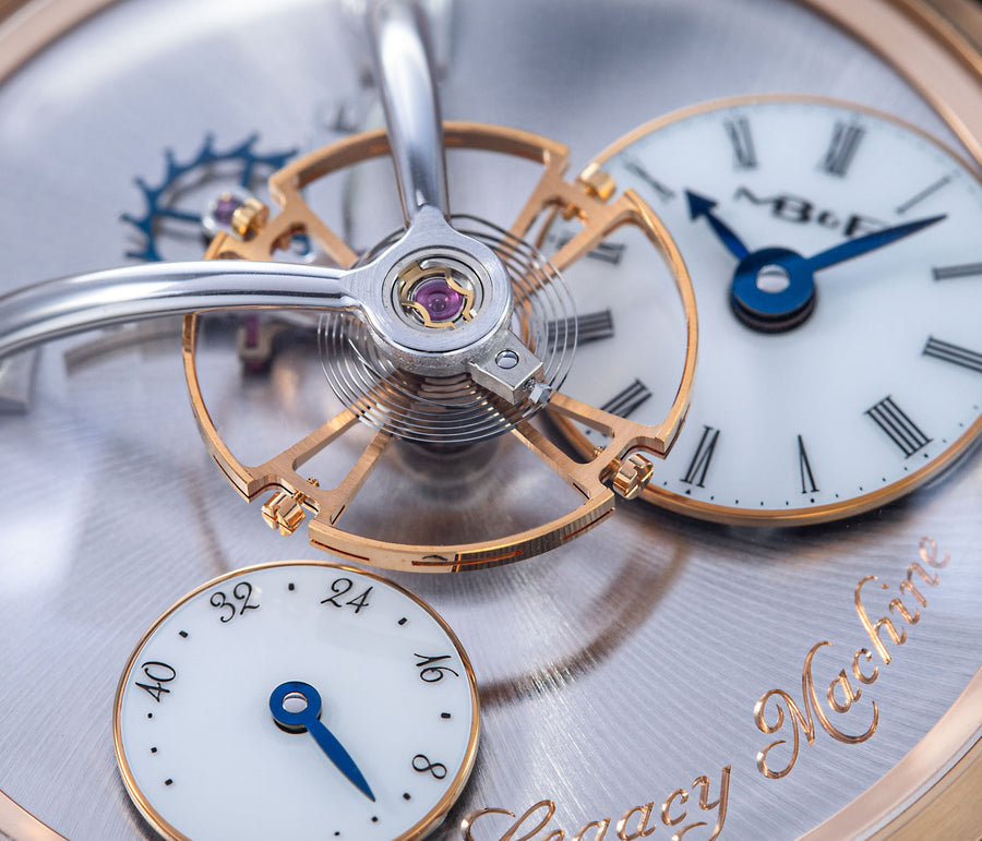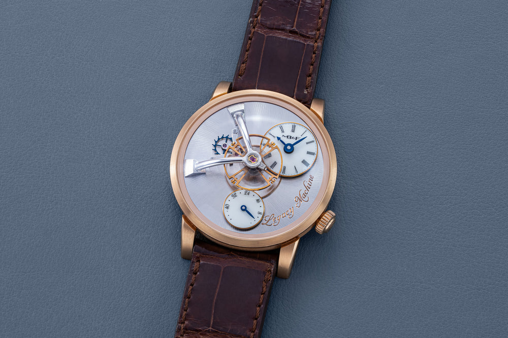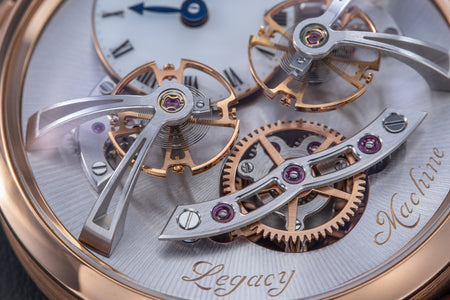 The very first model of the Legacy Machine (LM) collection, the LM1 established the aesthetic that would define the series. Conceived as a horological machine designed in the 19th century, the LM1 incorporates many elements inspired by classical watchmaking.