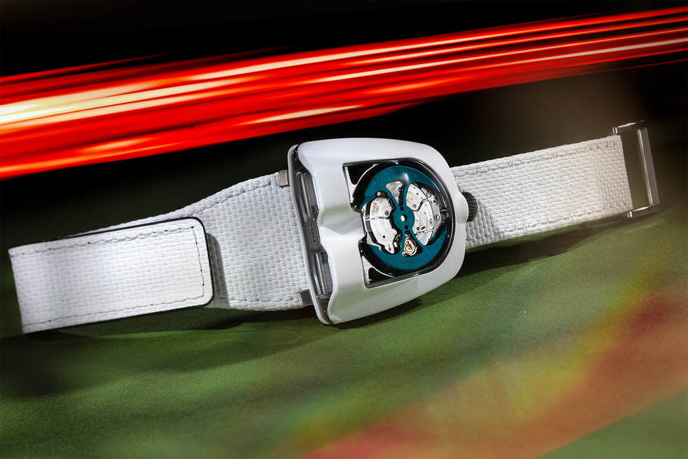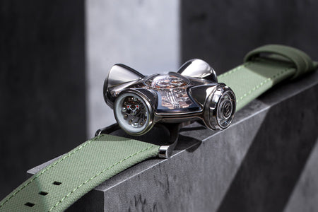 MB&F has long been known for its captivating designs that pay homage to the automotive industry. The Horological Machine no. 8 Mark 2 is essentially a revamp of the HM8, another automotive-inspired watch that had paved the way before. Unlike the HM5, which drew inspiration from the rear window louvres of the Bertone Lamborghini Miura, the HM8Mk2 uses the same movement as its predecessor with a Girard-Perregaux base. The HM8Mk2 also replaced the Can-Am-inspired chrome ‘roll bars’ with a new composite material known as Carbon Macrolon for its case. It also features a double-domed sapphire case alongside a 22k gold rotor as well as the brand new ‘double de-clutch’ crown system.