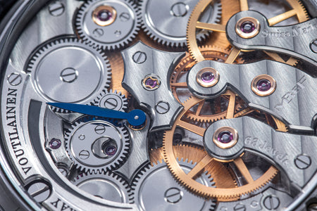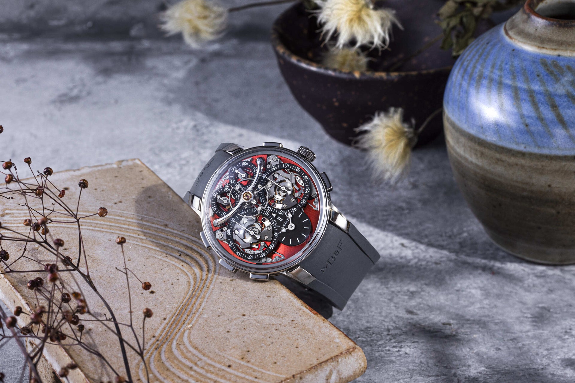 The design of the LM1 also made it an ideal canvas for collaborations with artists and designers. One of the earliest was the LM1 Xia Hang that incorporates a discreet sculpture by the eponymous Chinese artist. A tiny, polished aluminium figure forms the power reserve indicator, sitting upright when the watch is fully wound, and head bowed when the mainspring is flat.